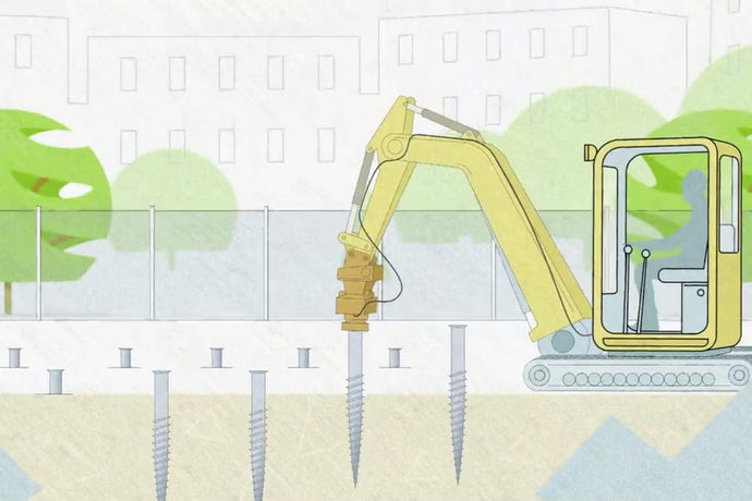 Steigung und Breite des Gewindes sind so dimensioniert, dass sich die Erdschrauben in nahezu allen Bodenarten leicht ein- und ausdrehen lassen und trotzdem ein Maximum an Tragfähigkeit sichergestellt wird.